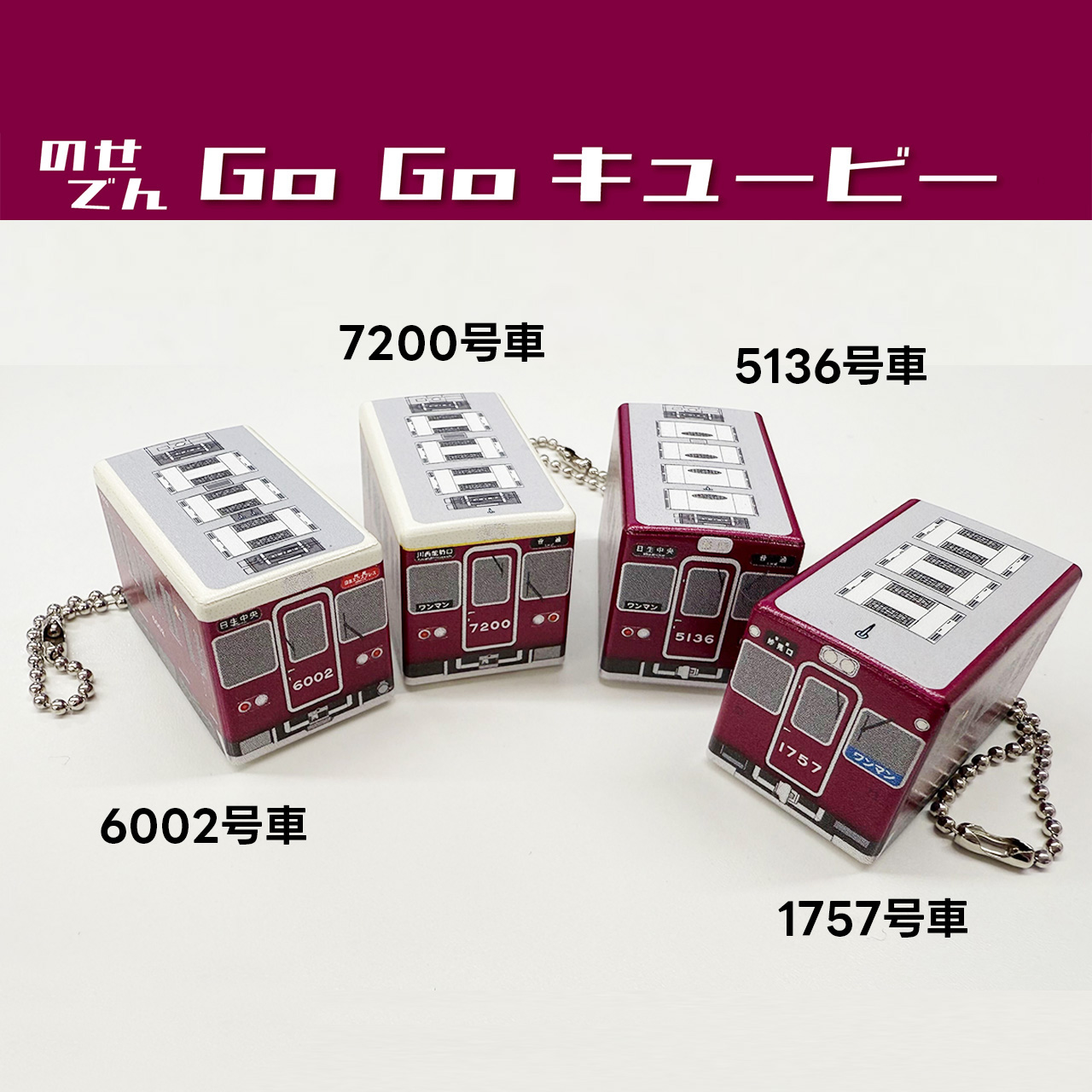 人気シリーズ「GO GO キュービー」に、のせでんの各車両が登場です!のせでんの代表的な4つの車両が勢ぞろい!ボールチェーン付でキーホルダーとしても使用できますし、ゼンマイ式でしゅーんっと走ります!1つじゃ物足りない!?コンプリートしたくなるかも♪