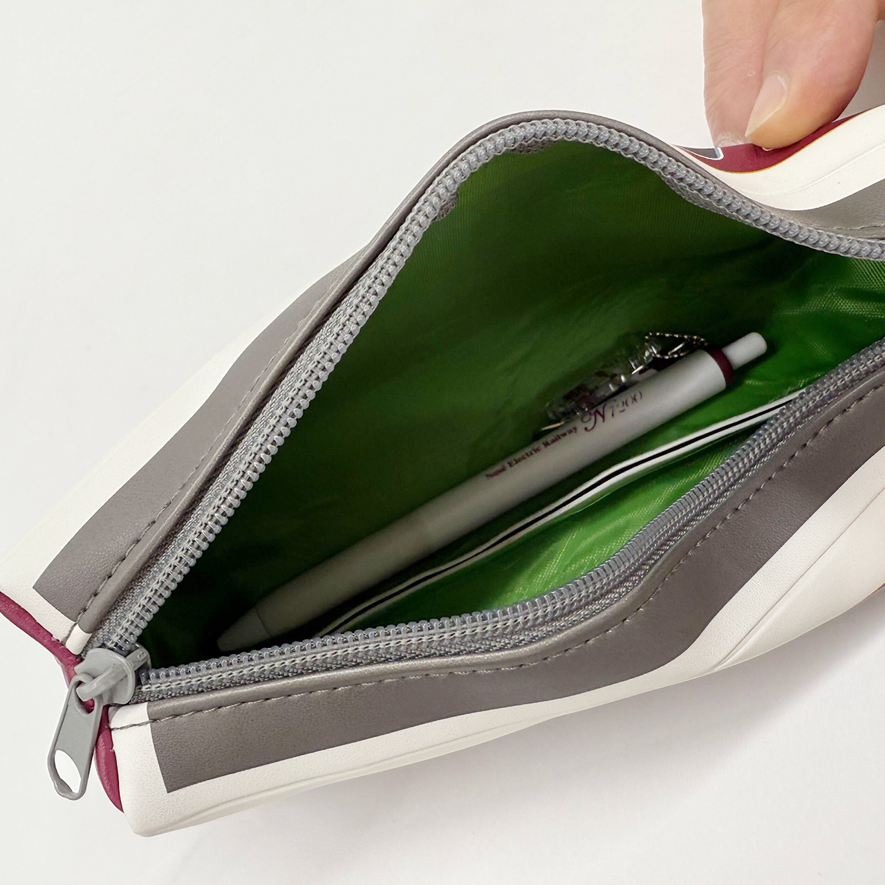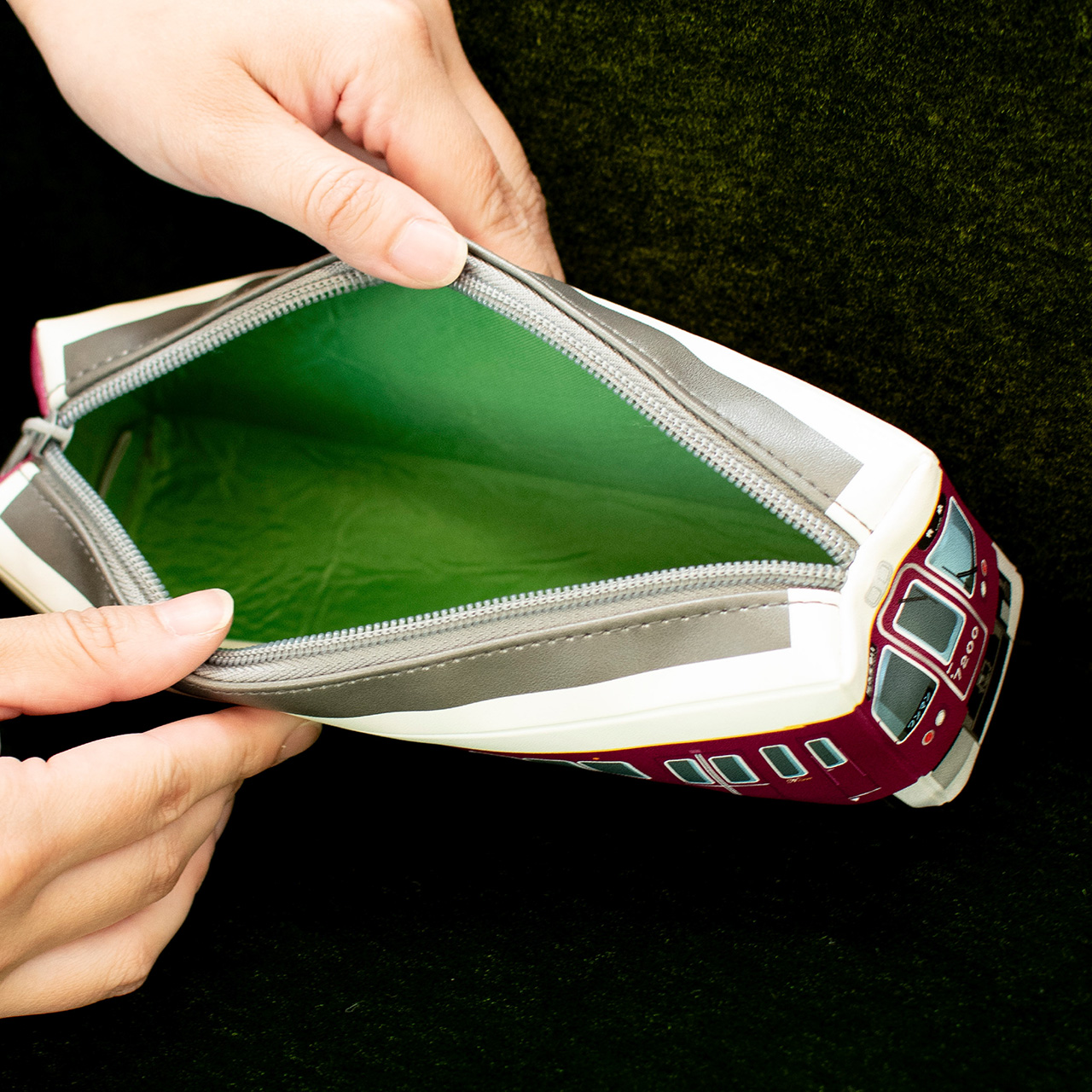 7200系の電車がリアルに再現された電車型ペンケース!内側は実際の車内をイメージしたグリーンカラーを採用しています。
