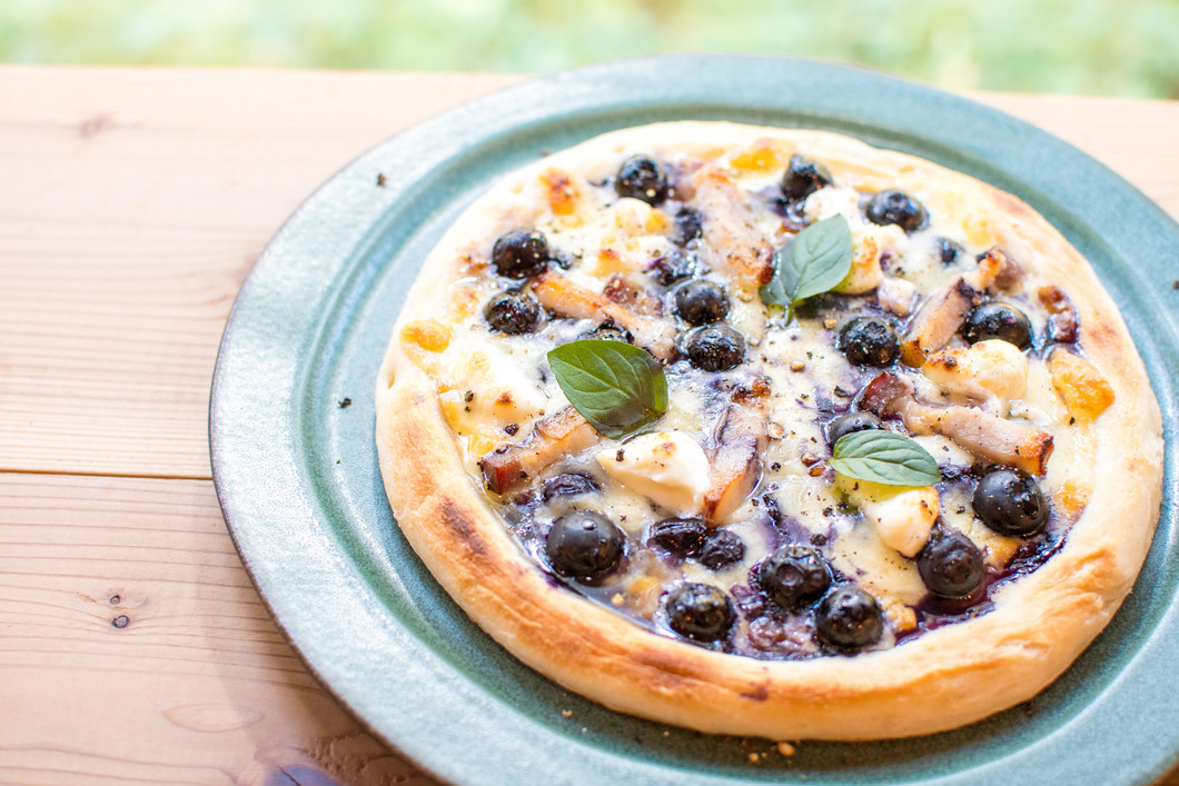 「日本一の里山」 川西市黒川地区の自然豊かな地に佇む体験型観光農園。農薬不使用で育てたブルーベリーやハーブをふんだん、農園横のカフェでは とする食堂 。に使った料理が楽しめる ブルーベリーの甘。ブルーベリーと自家製ベーコンのピザ、人気メニューは 、酸っぱさとじっくり燻したベーコンの香ばしさが生む絶妙なハーモニーは 一口食べればとりこに。