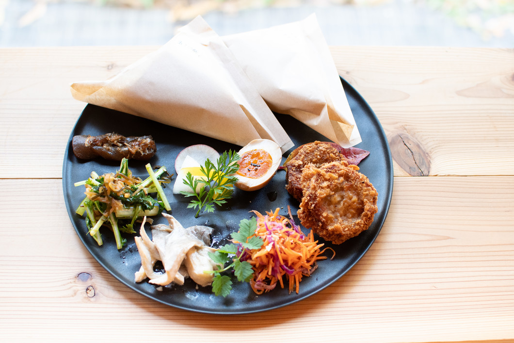 こだわりのお米で炊いたおにぎりと 旬の野菜がセットになった Waccaンラ チは見た目も美しく 。 食べる前から心躍ること間違いなし!