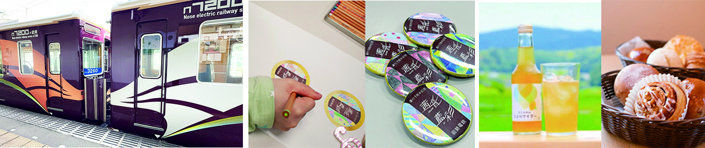 大阪最北端の駅である「妙見口駅」に向かう豊かな自然を象徴とする路線を「光・風・川」をコンセプトに表現しています。風景への調和を重んじながらも、新車両導入の新しい風を、「金・銀・銅」と「茜(あかね)色」「藍(あい)色」の色味を丁寧に用いることで、日々ご利用いただく皆様にとって「彩り」をもたらすものであるよう願いを込めてデザインしました。